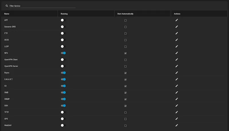 First, on the machine that hosts the pool we want to replace, we'll disable any services that may be interacting with any of the datasets in our existing pool (tank). Services like nfs, smb, etc. that could be accessing shares.
